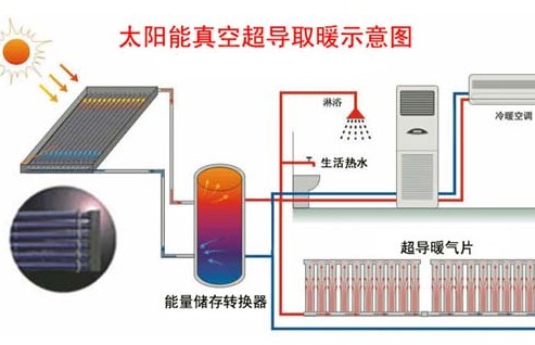 集热器温测器和水温感应器置入在太阳能热水地暖系统中,能够很好地吸收太阳能辐射后,促使集热管温度上升,然后当集热器温度和水箱温度水温差到达△t设定值时,通过检测系统发出指令,循环泵将中央热水器中的冷水输入集热器中,然而水被加热后又再次回到水箱中,使水箱内的水达到设定的温度。
